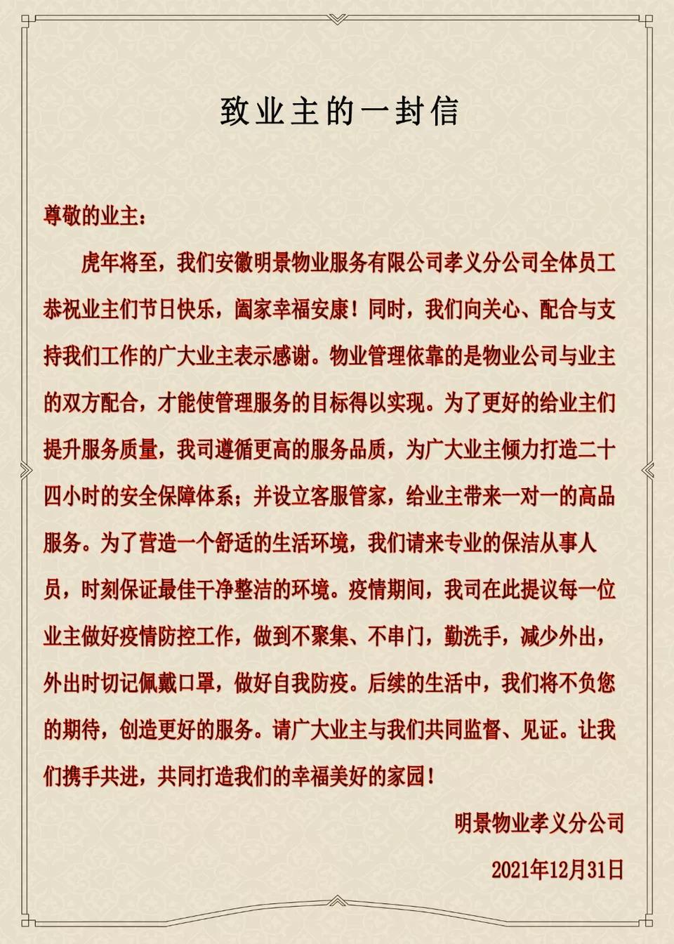 給業(yè)主的一封信