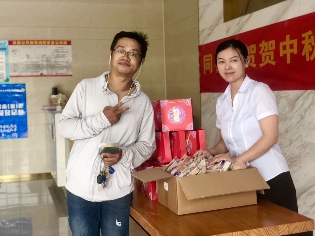 一大早,物業(yè)工作人員就帶上準備好的月餅,開啟中秋送月餅之旅。工作人員親切的笑容讓收到月餅的業(yè)主倍感溫暖。“很開心,真的很開心,平時有個什么事都經(jīng)常麻煩物業(yè)公司,每次去的時候工作人員都很耐心很熱情!今天的月餅也一定是最好吃的月餅!”鼎鑫中心的業(yè)主表示。