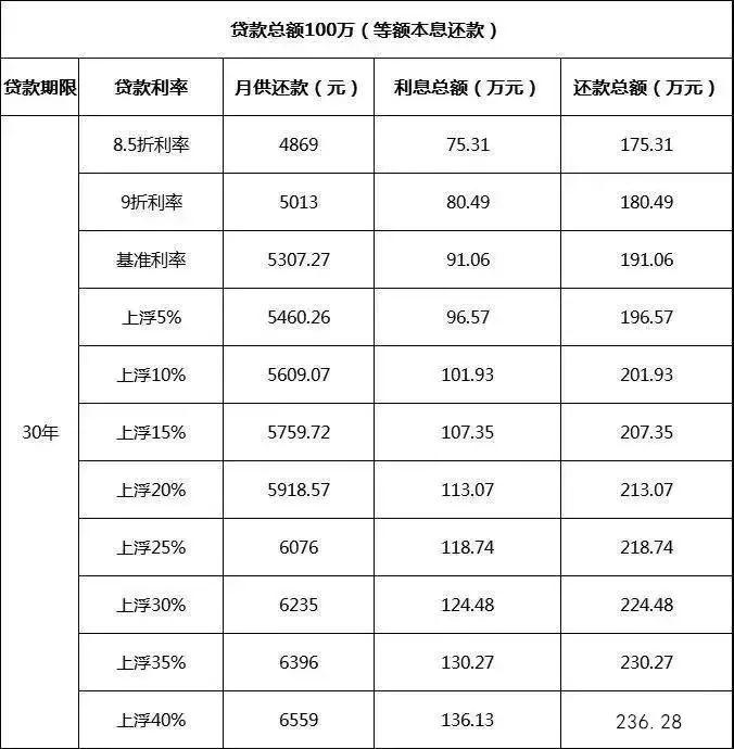 (等額本息還款對照表,上浮30%利息漲33萬)