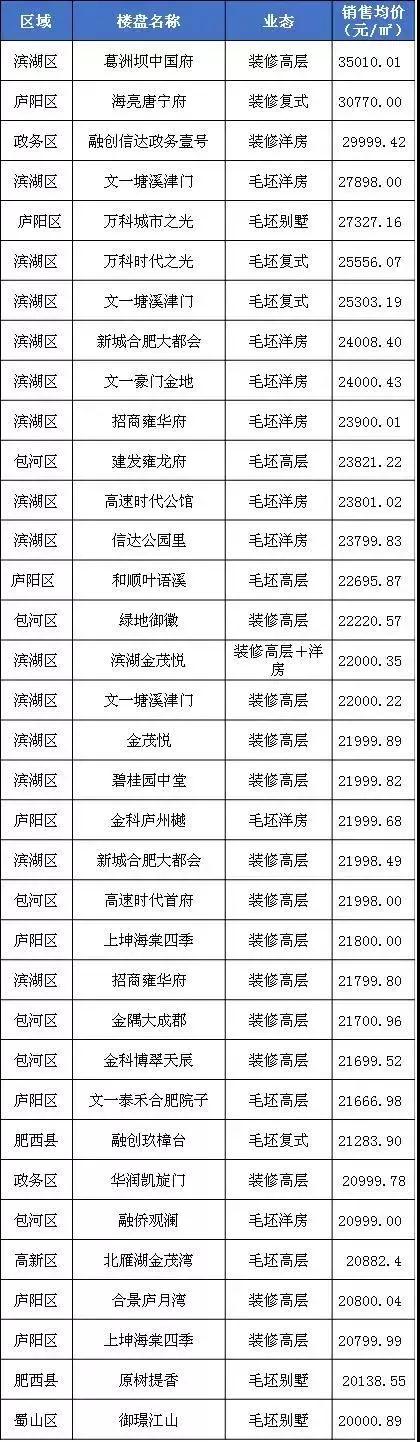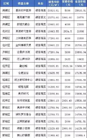 據(jù)樓市安徽統(tǒng)計,2018年備案的樓盤中,有33盤備案價已經(jīng)超過2萬元/平米,其中有兩盤已經(jīng)破3萬大關(guān)。